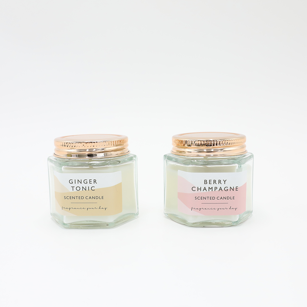 AROMART SCENTED GLASS 70G CANDLE:1)GINGER TONIC;2)BERRY CHAMPAGNE